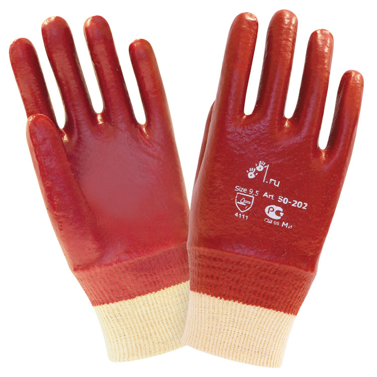 Перчатки с ПВХ покрытием. 100% хлопковая основа с полным ПВХ покрытием толщиной 1,8 мм, резинка. Высокая чувствительность, защита от истирания, стойкость к разрыву и зацепам, к слабым растворам кислот, МБС, герметичны. Размер 10,5. Перчатки обработаны по технологии Actifresh, для подавления развития бактерий, устранения неприятных запахов. Рекомендованы к применению во всех сферах производства от сборочных работ до строительства. Обладают преимуществом перед перчатками с нитриловым покрытием при работах в холодное время года (обычный ПВХ сохраняет свойства при температурах от -4, до + 60С, ПВХ используемый для производства зимних перчаток, от -50), т.к. обладают значительно большей эластичностью при низких температурах, а нитрил "дубеет". Часто перчатки этого типа называют "МБС". Это является ошибкой, т.к. наличие ограниченной защиты от масел, нефти, кислот и щелочей, не может быть достаточным основанием, для их определения как защитных от масел и бензина (МБС – маслобензостойкие). Путем составления сложных смесей полимеров и пластификаторов получают ПВХ перчатки с разными уровнями химической защиты. Если перчатки действительно МБС на них обязательно должна быть соответствующая маркировка. Подробнее -в разделе «перчатки для специальной защиты», "дополнительная информация - стандарты на средства защиты рук".