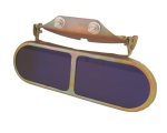 Очки козырьковые с минеральными защитными стеклами-светофильтрами в жестком металлическом стеклодержателе с поворотно-фиксирующим устройством и кронштейном для крепления на защитный головной убор или лицевой щиток.
