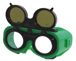 Очки современные, удобные, с высокими эксплуатационными свойствами состоят из мягкого корпуса из ПВХ пластиката, в котором установлен жесткий стеклодержатель с прозрачными пластмассовыми защитными стеклами Plexiglas CE и откидного стеклодержателя с минеральными защитными стеклами-светофильтрами.