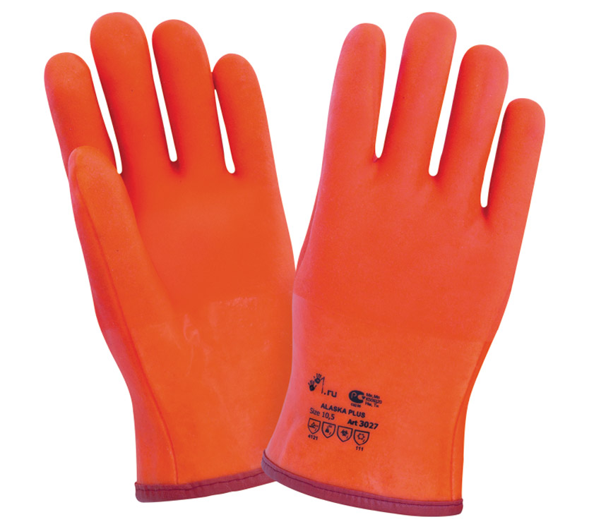 Перчатки зимние с полным покрытием ПВХ. Флисовая основа из 100% хлопка с покрытием из эластичного морозостойкого ПВХ — тройное погружение, общая длина перчатки 270 мм,